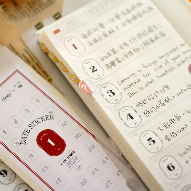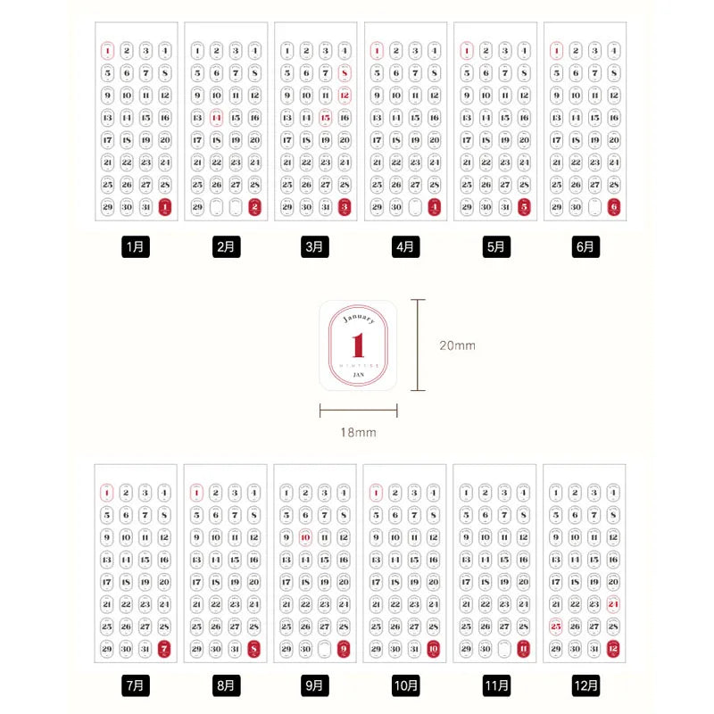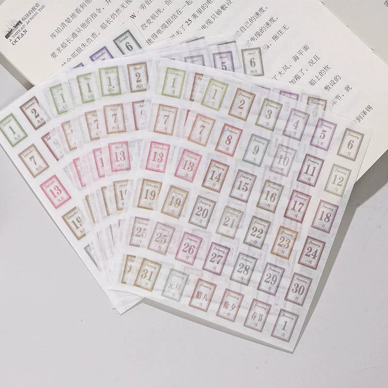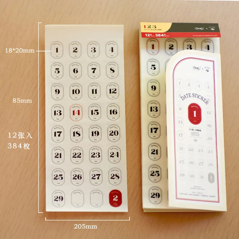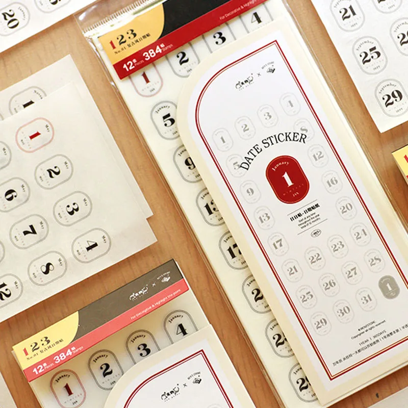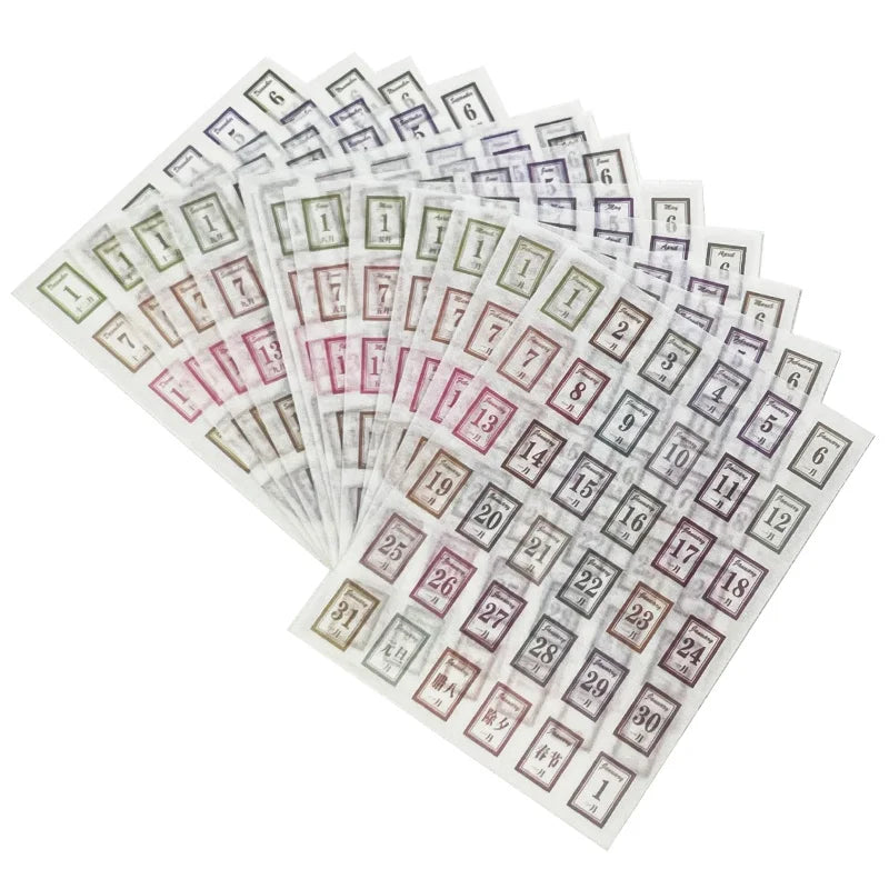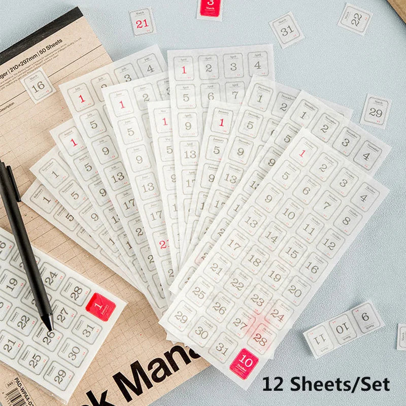 12 Sheets Number Date Label Sticker Year Planner Colorful 365 Daily Days Stickers Stationery Agenda Diary Journal Stickers