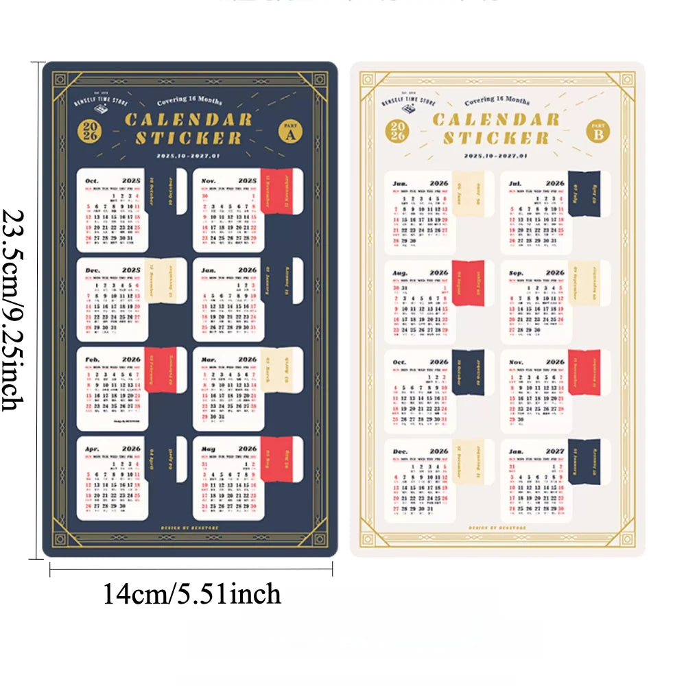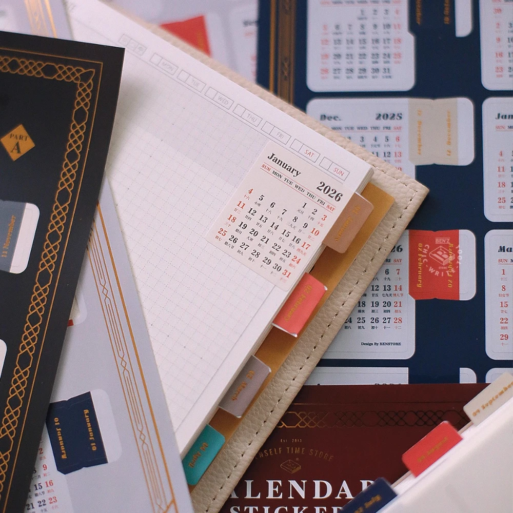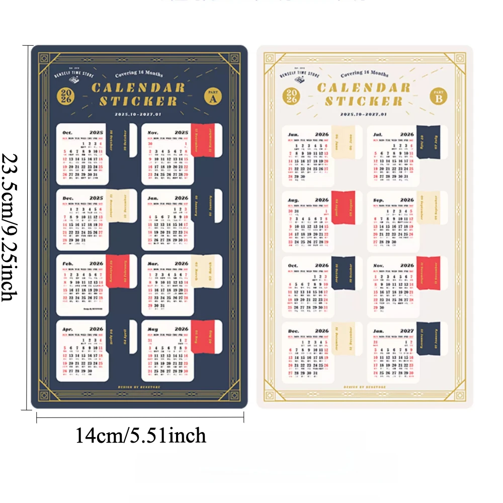 1pc 2026 Calendar Gold Foil Index Stickers, 16 month Waterproof Self Stick Bookmark Planner Calendar Stickers for Scrapbooking