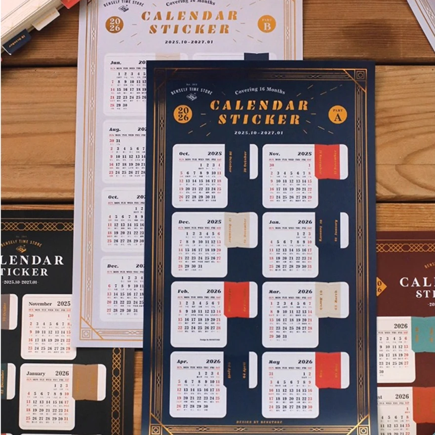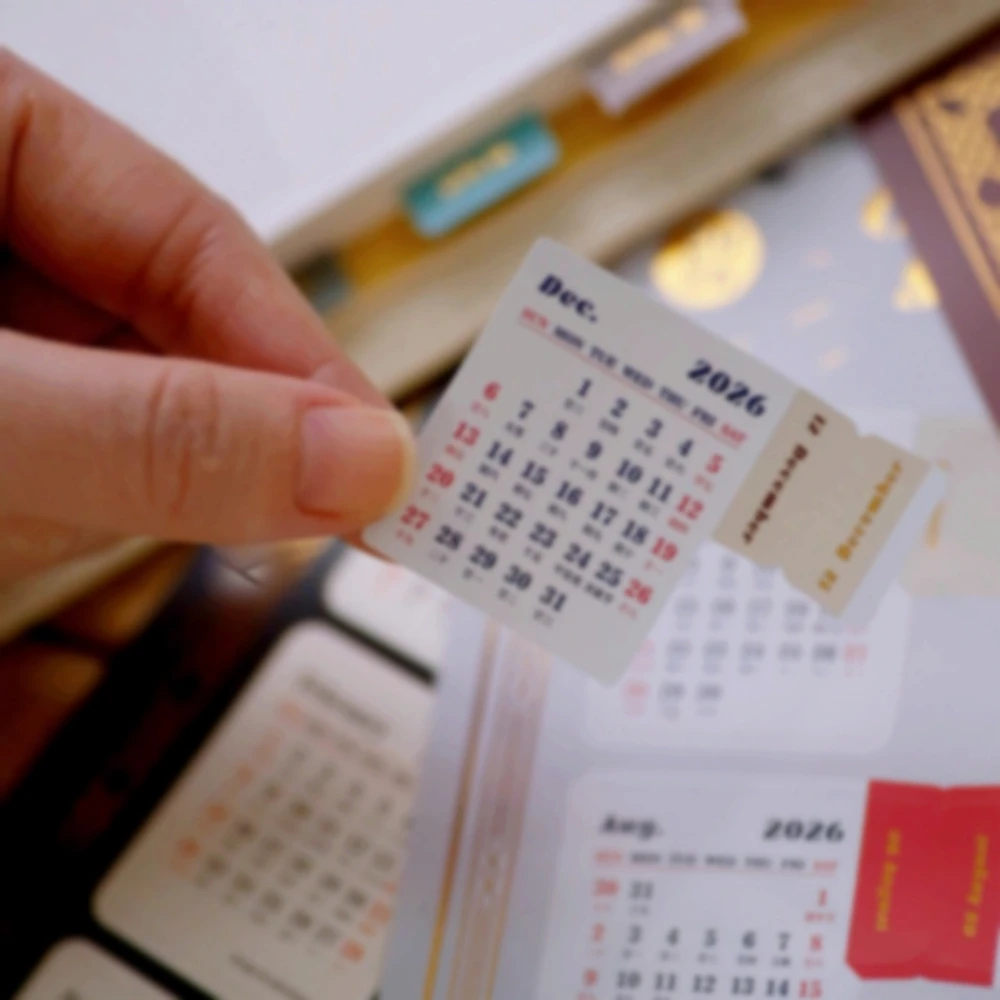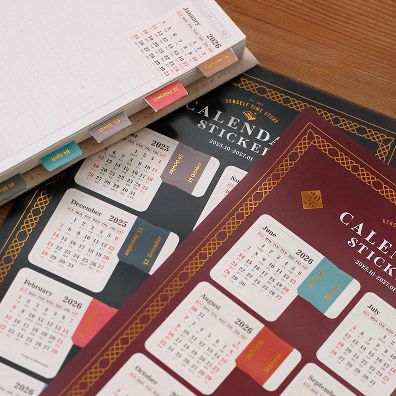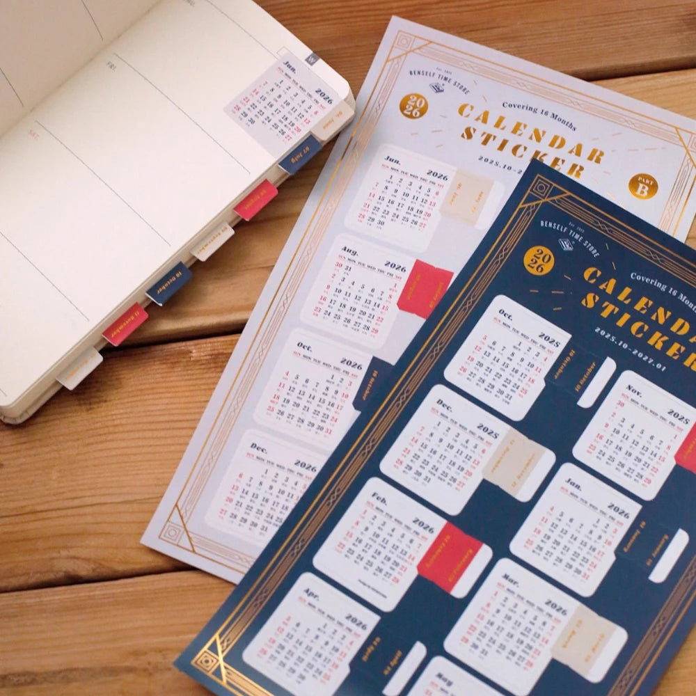 1pc 2026 Calendar Gold Foil Index Stickers, 16 month Waterproof Self Stick Bookmark Planner Calendar Stickers for Scrapbooking