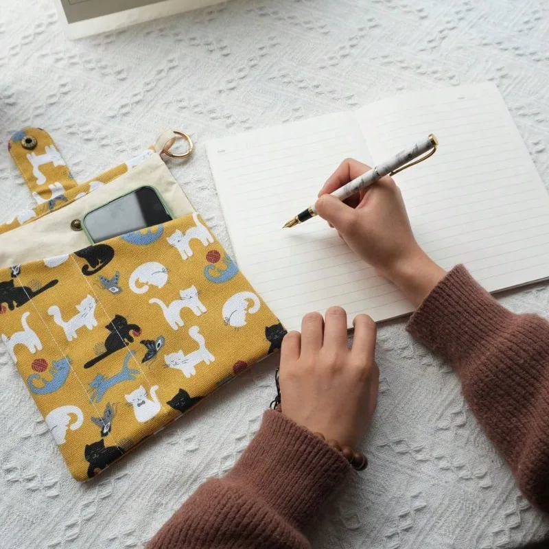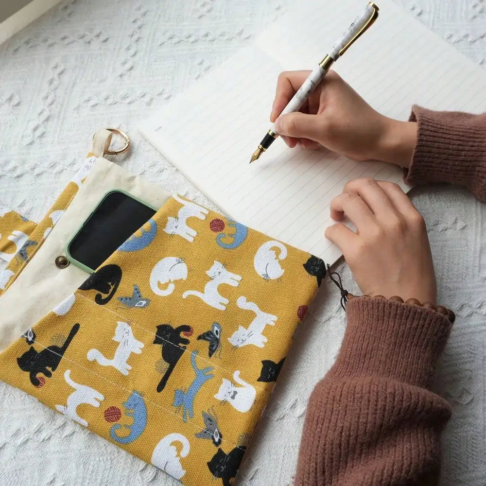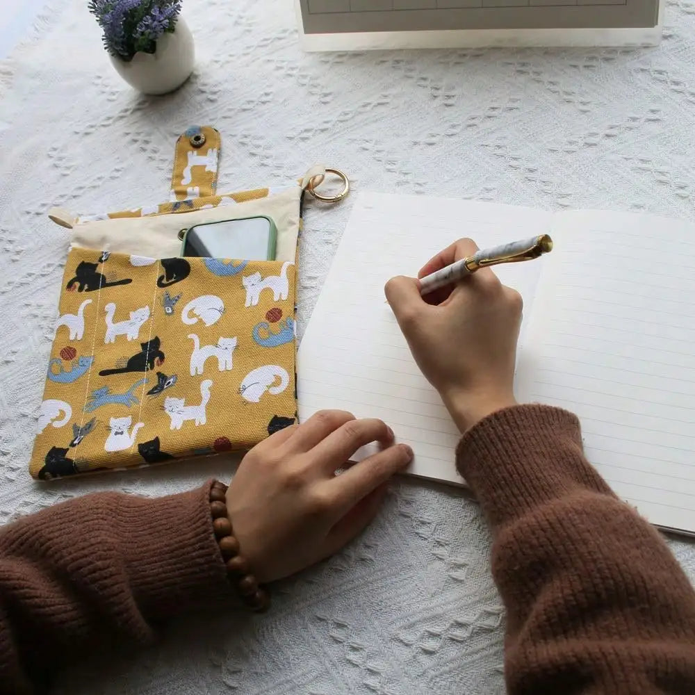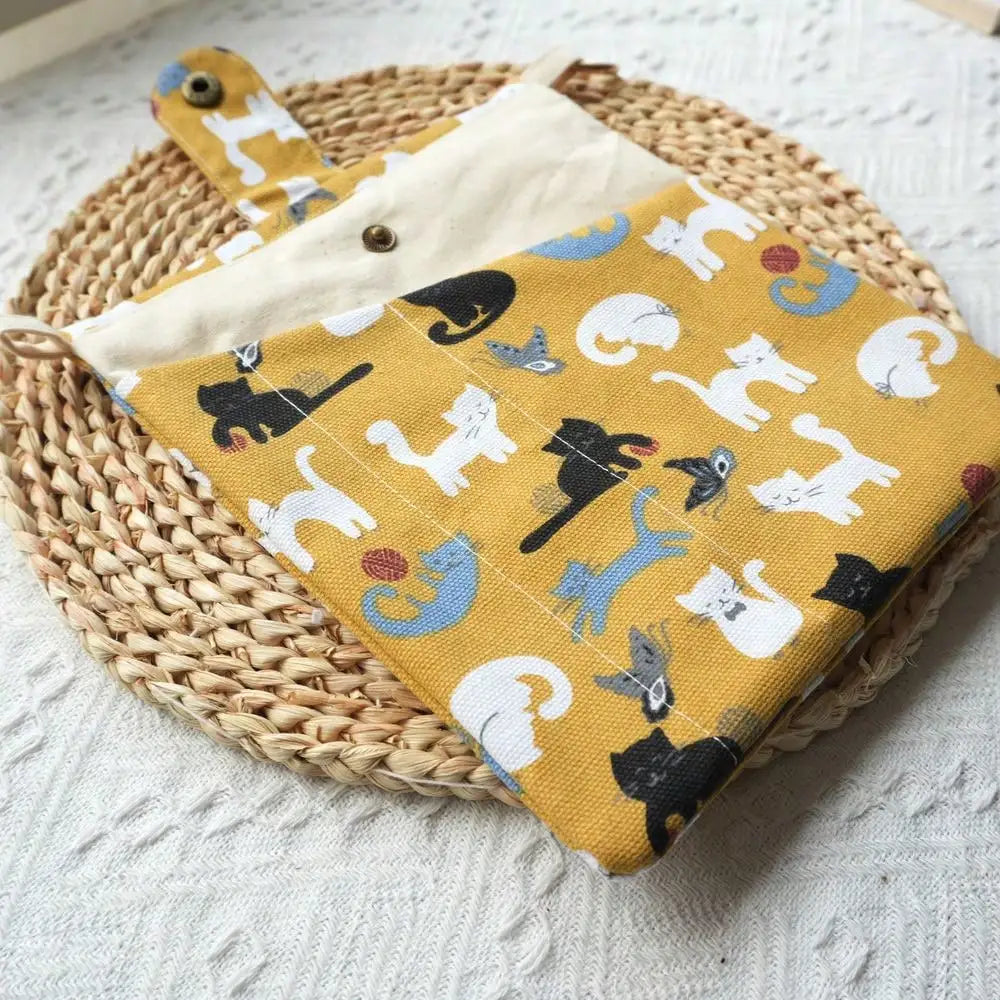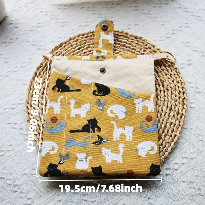 1PC Playful Cat Canvas Bag Book Bag Washable Durable Canvas Bag With Front Pocket For Tools Ideal Choice For Book Lovers