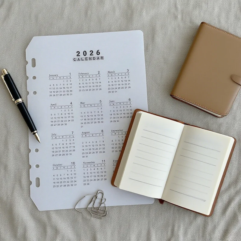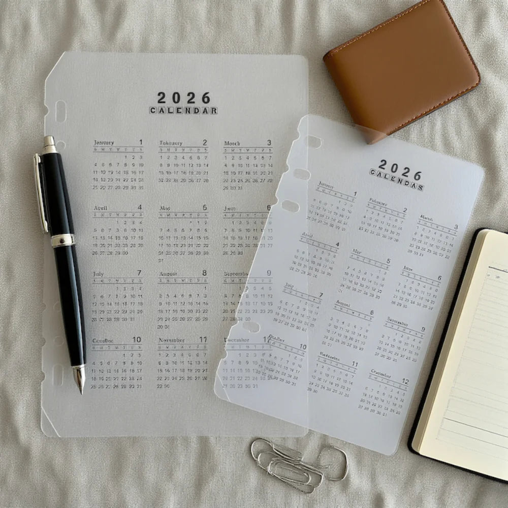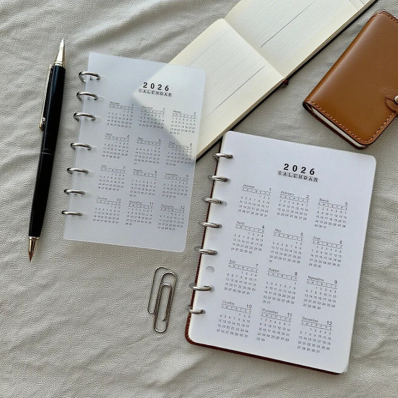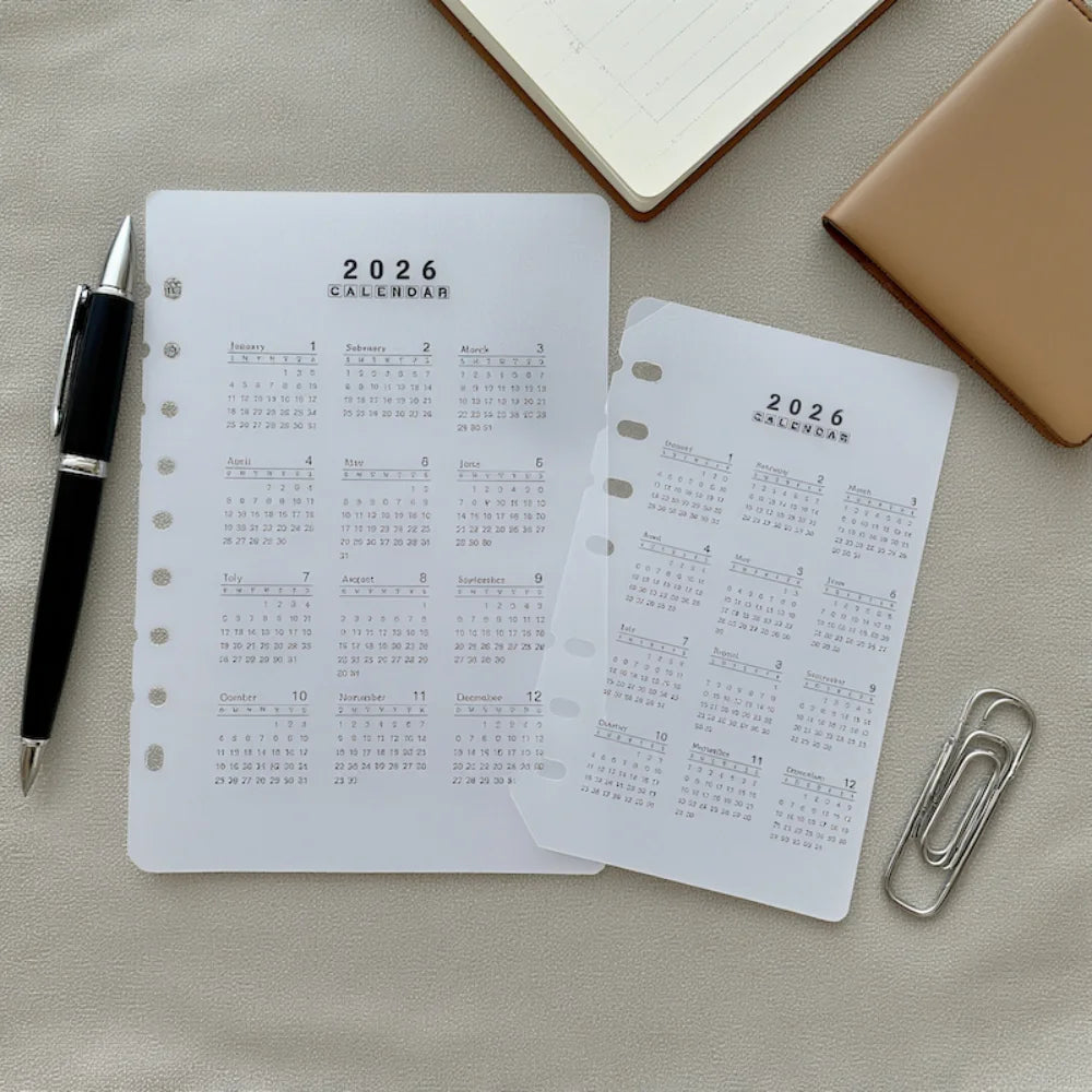 2026 A5/A6 Loose Leaf 6 Holes Calendar Separator Page Durable Transparent PP Frosted Material for Planner Time management