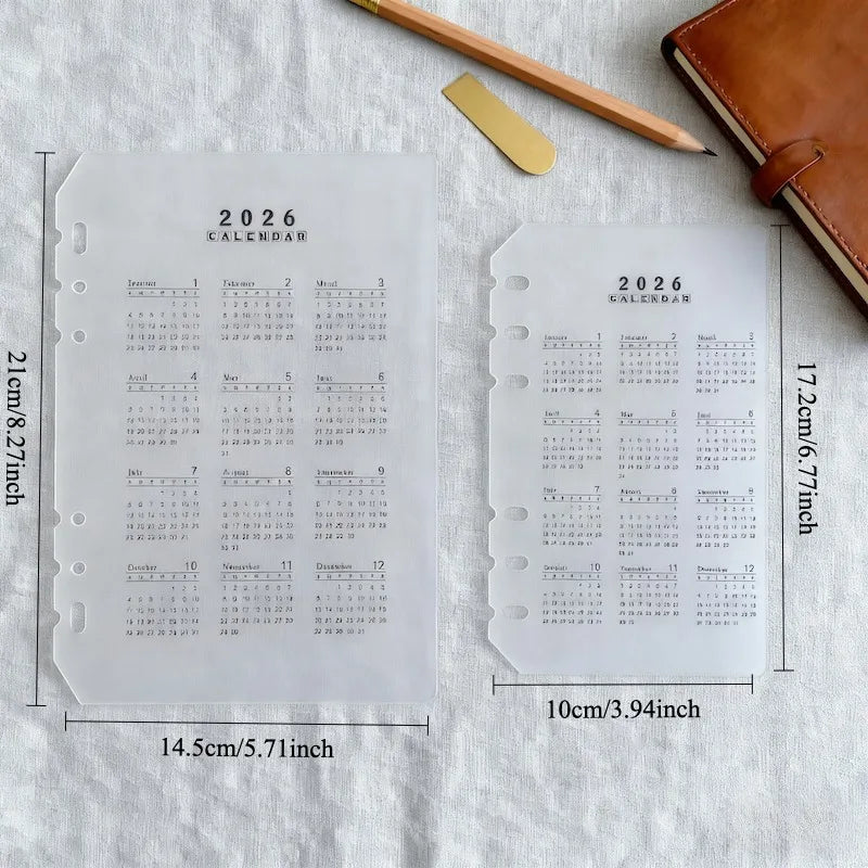 1pc 2026 A5/A6 Loose Leaf 6 Holes Calendar Separator Page Durable Transparent PP Frosted Material for Planner Time management Organization Plan