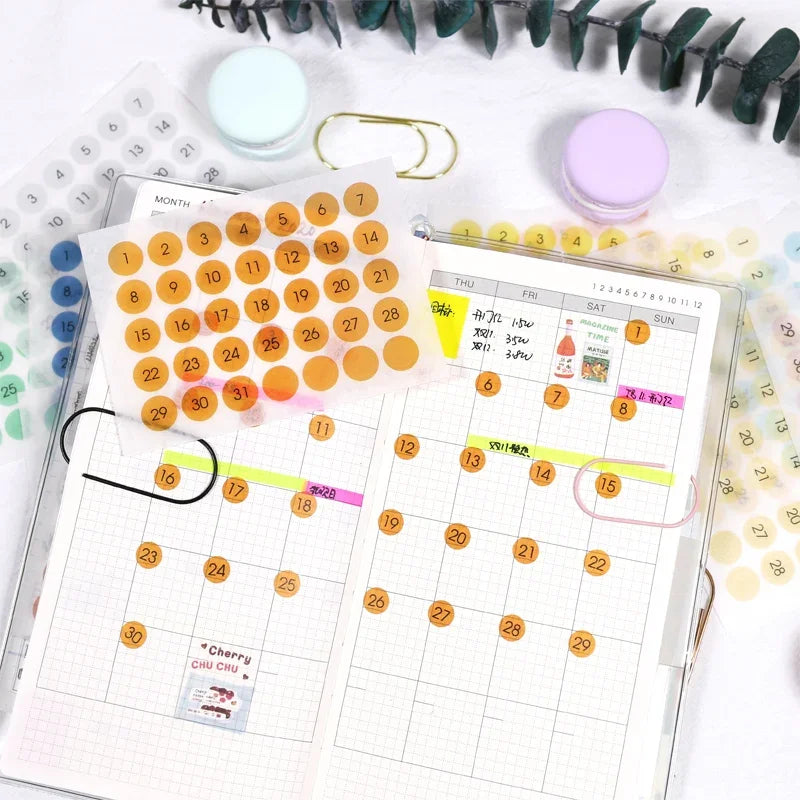Candy Color Round Label Sticker Daily Number Diary Weekly Planner Stickers for Full Year Schedule Mark Journaling Stationery