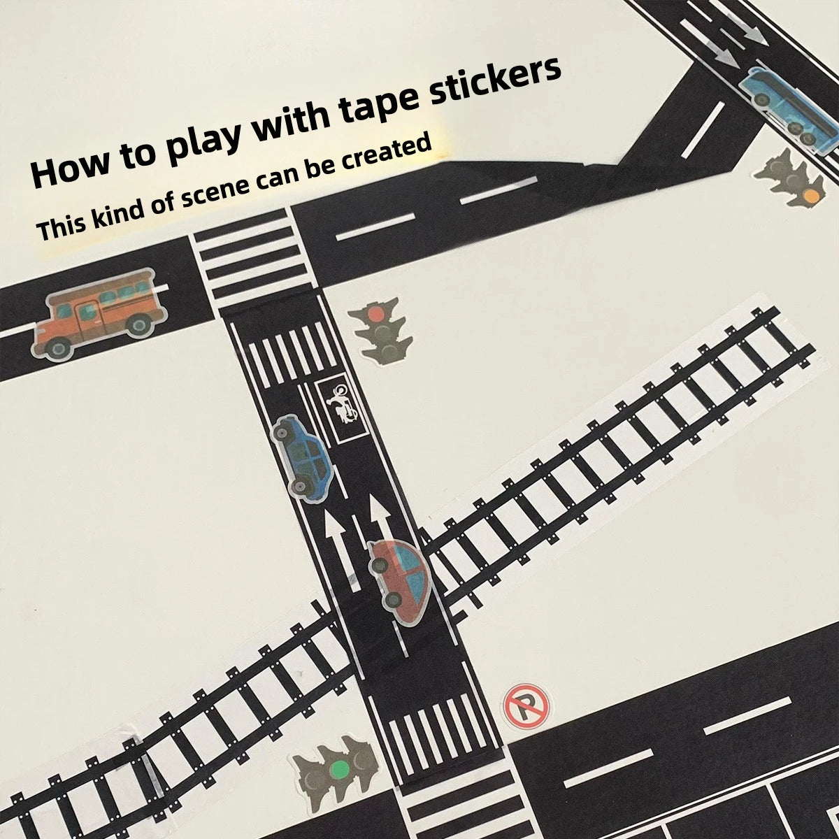 DIY Road Rail Transit Railway Highway Paper Tape Car Train Curve Self Adhesive Stickers