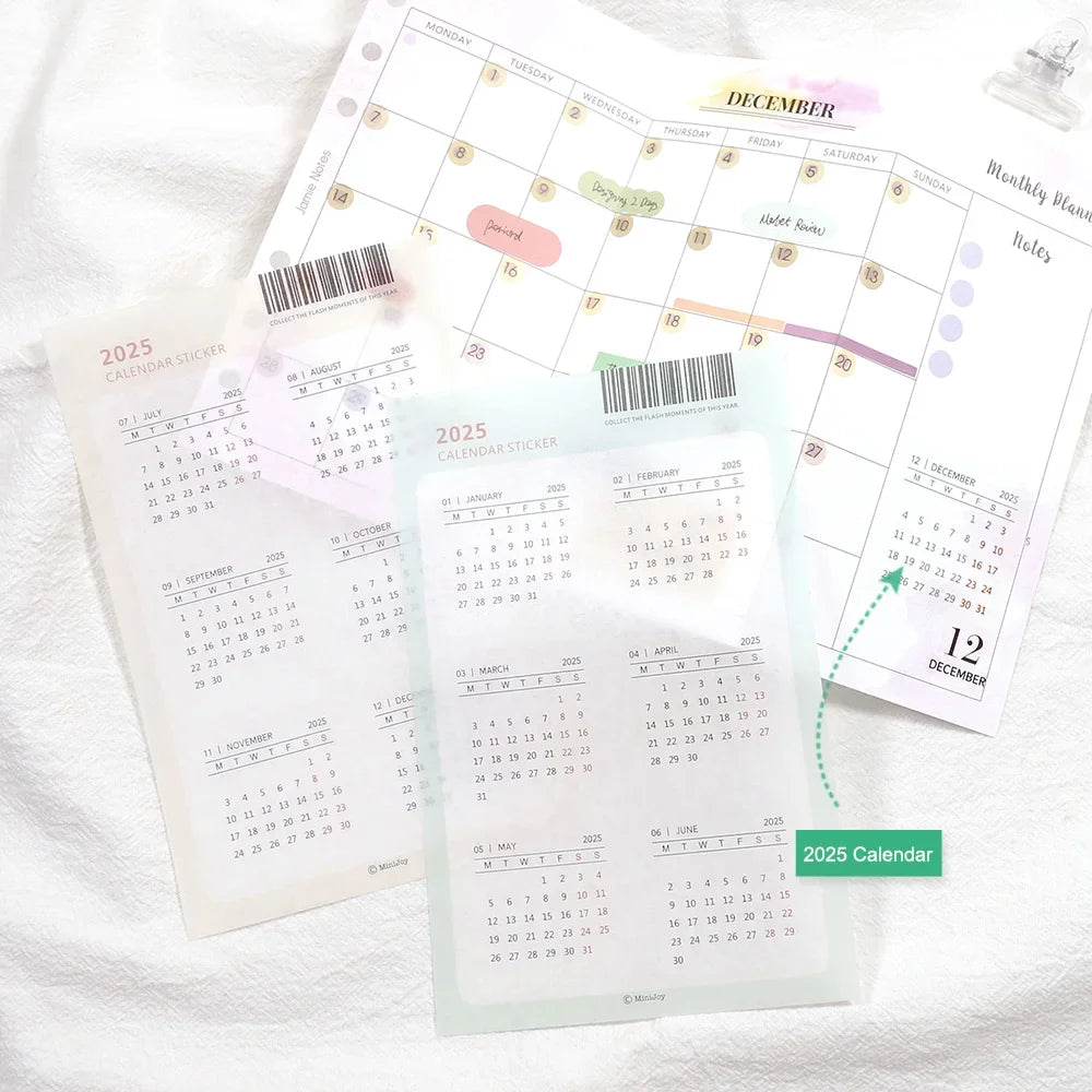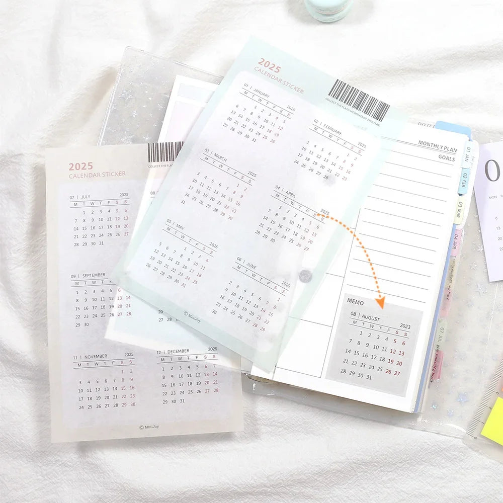 Fromthenon 2025 Calendar Stickers Traveller's Notebook Planner Journal Annual Calendar Stickers Office Stationery Supplies