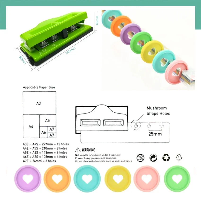 Fromthenon 4 Hole Creative Mushroom Hole Puncher Disc Ring Binding Cutter T-type Paper Puncher Craft Diy Tool Offices Stationery