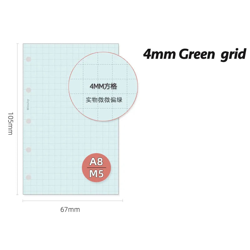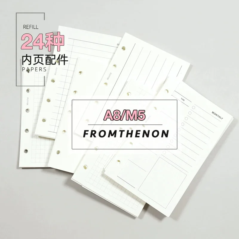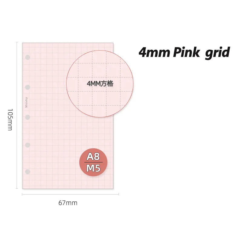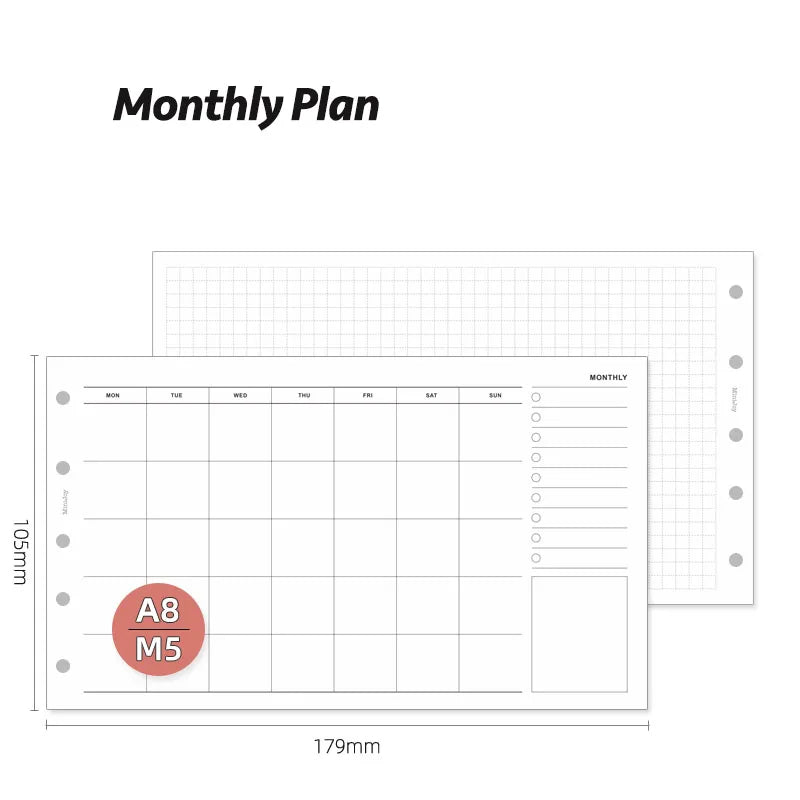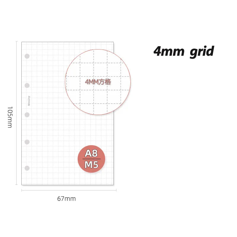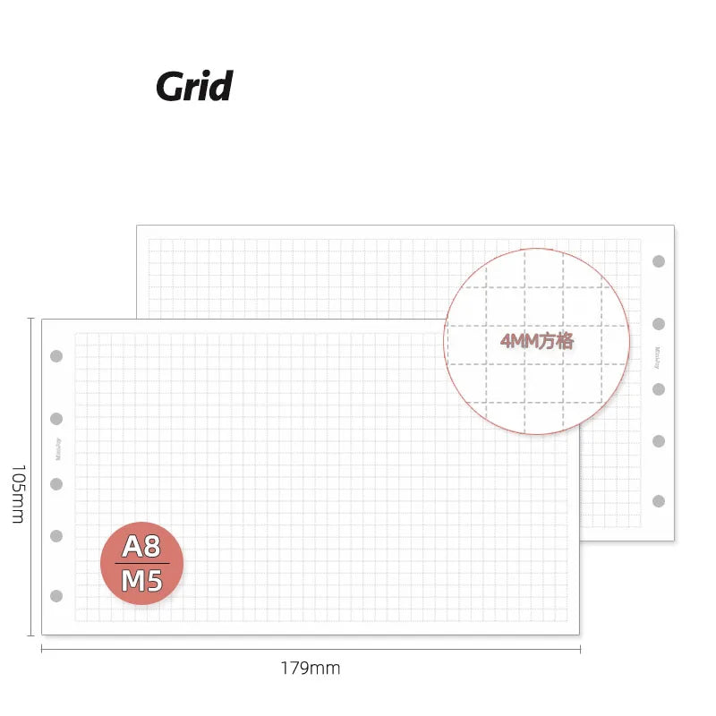 Fromthenon A8 Notebook 5 Hole Loose Leaf Core Grid Blank Monthly Plan Inner Page Writing Stationery Supplies