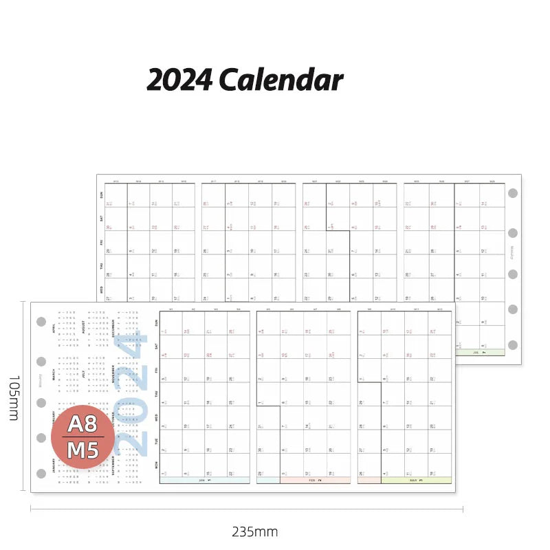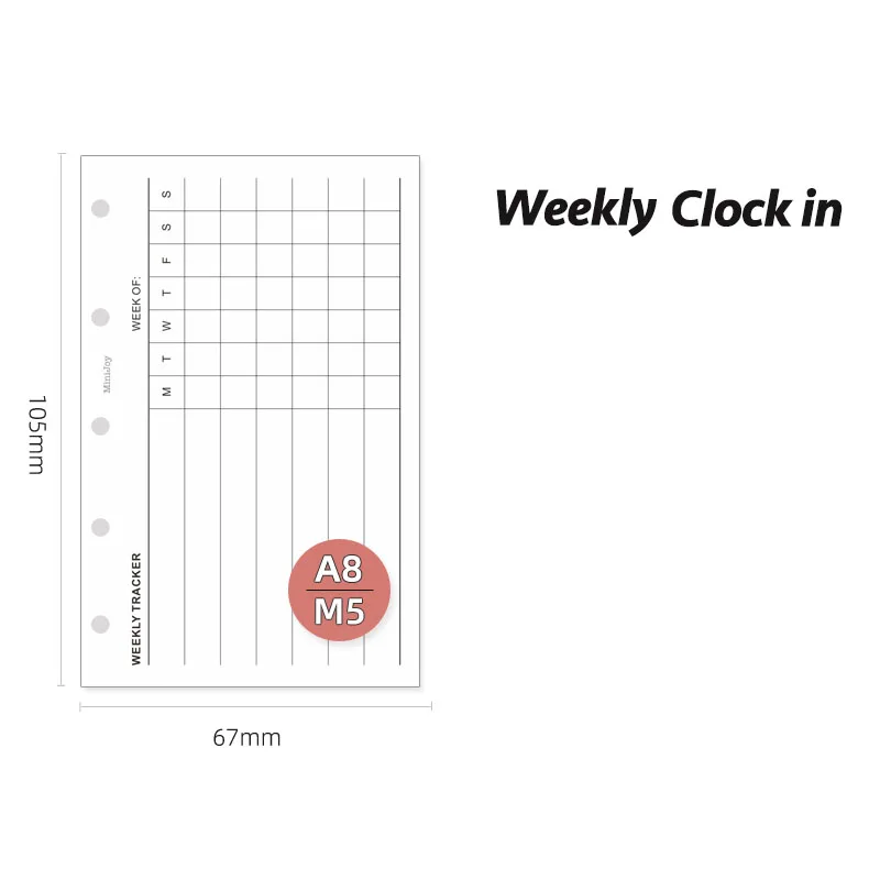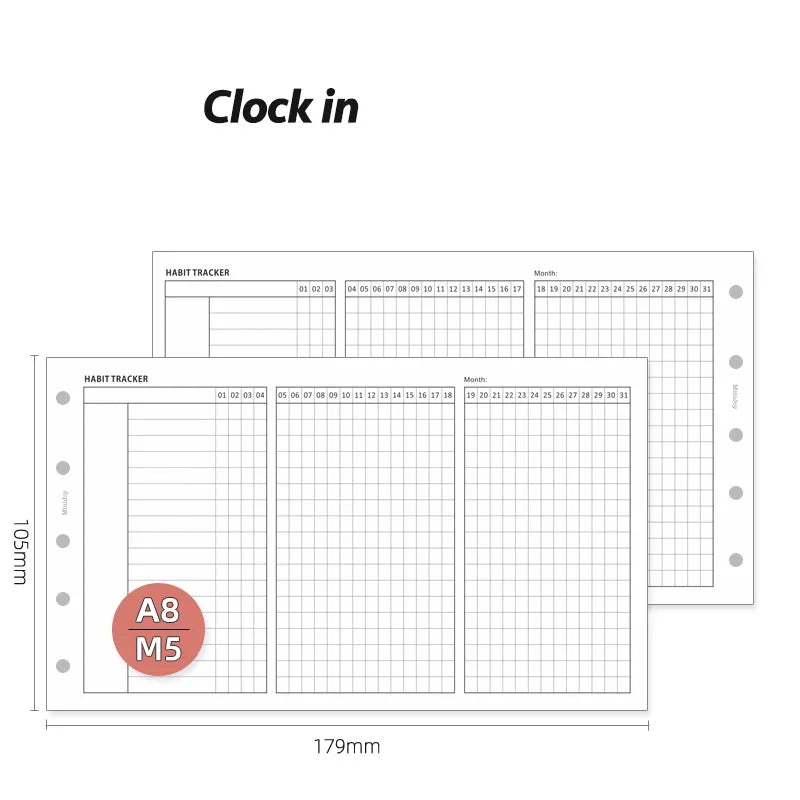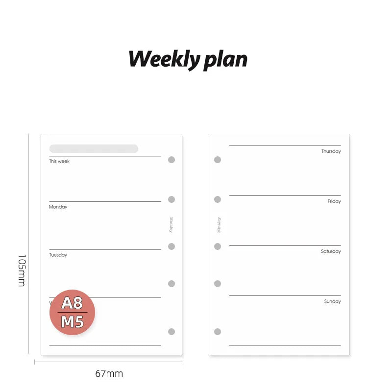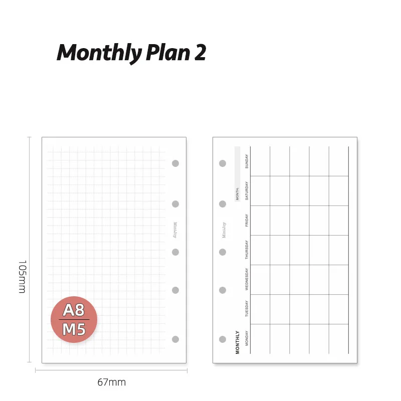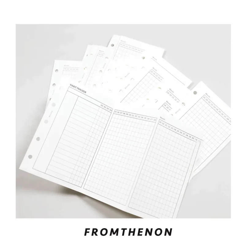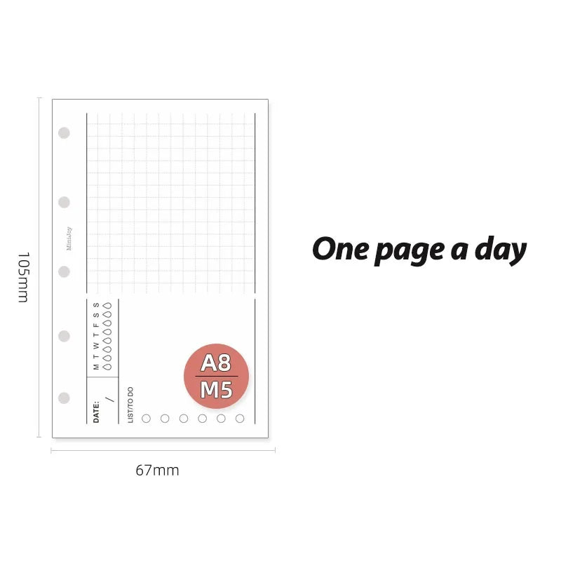 Fromthenon A8 Notebook 5 Hole Loose Leaf Core Grid Blank Monthly Plan Inner Page Writing Stationery Supplies