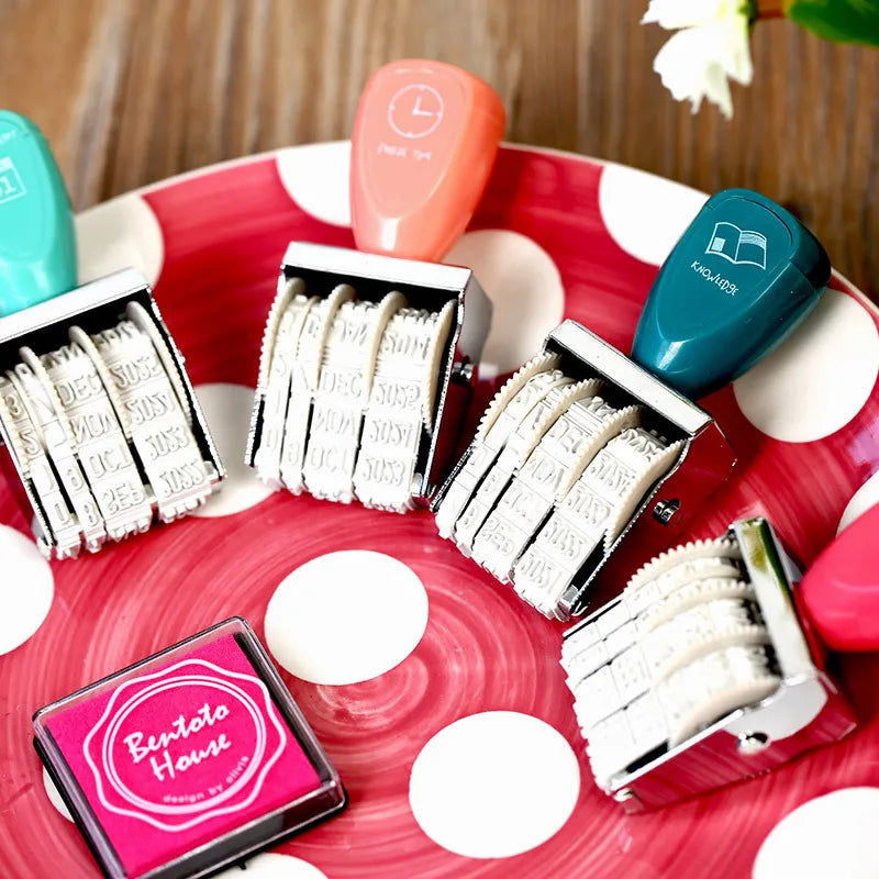 Fromthenon Cute Date Stamp for Planner Clear Stamps Bussiness Rubber Stamp with Adjustable Date Diary School Supplies Stationery