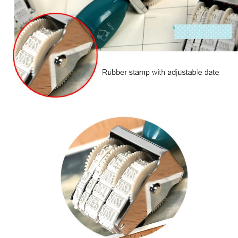 Feature:rubber stamp with adjustable date;