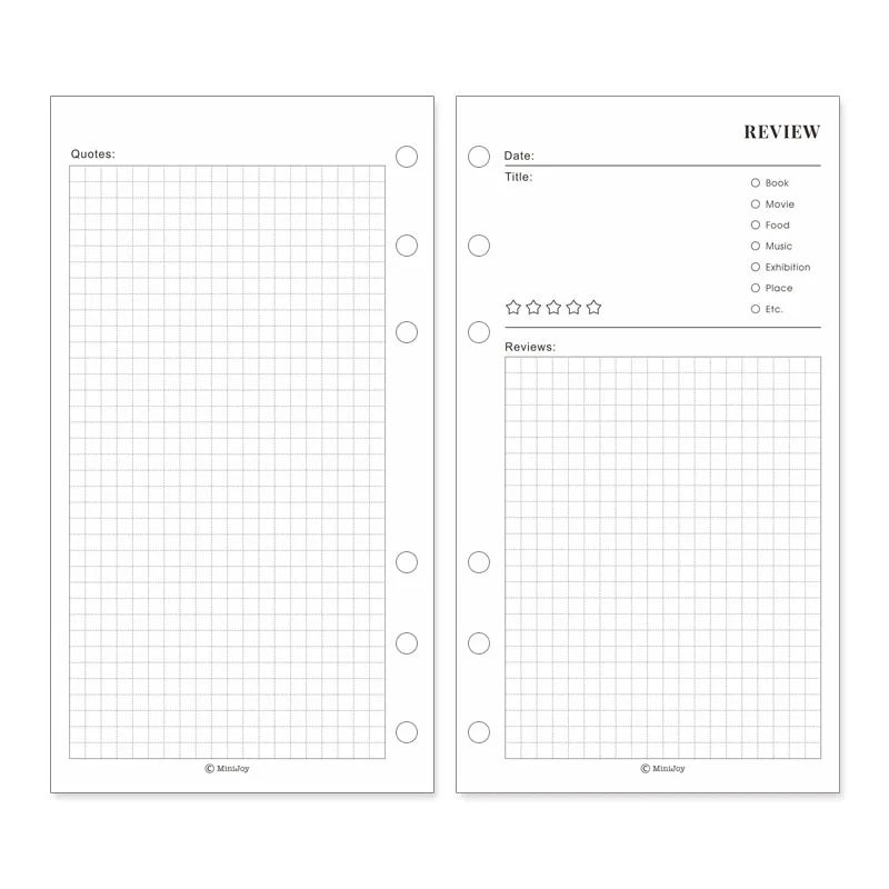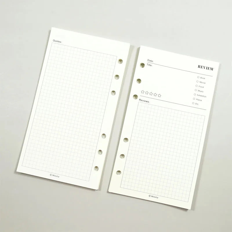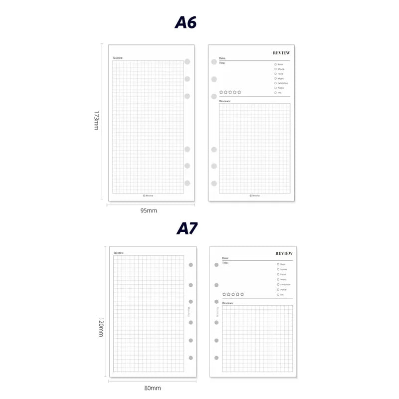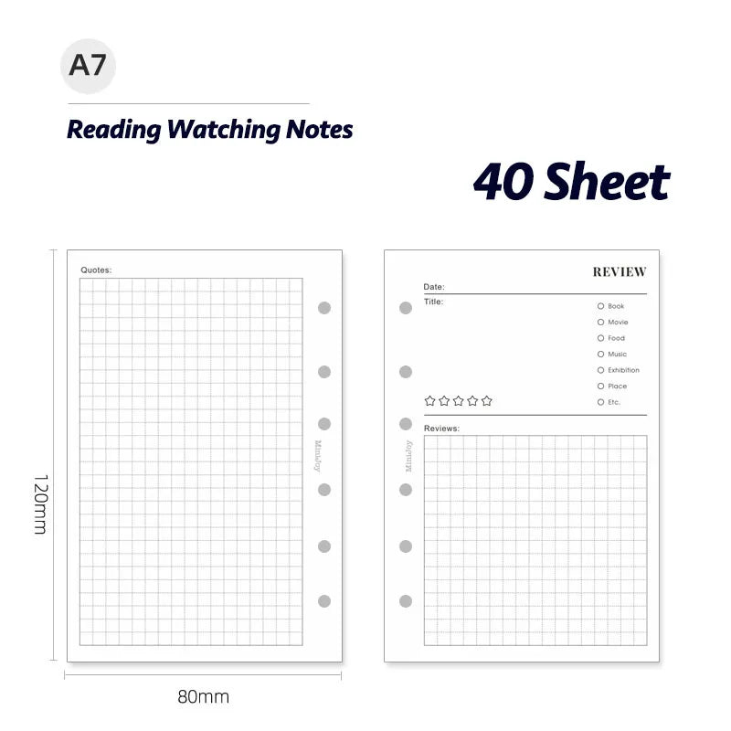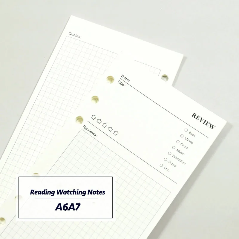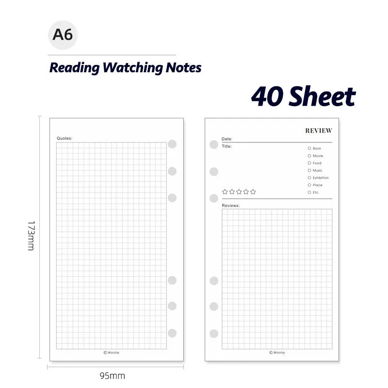 Fromthenon Minimalist Ledger Loose Leaf Paper 40 Sheets A6A7 Inner Pages Reading Watching Notes Loose Leaf Replacement Core