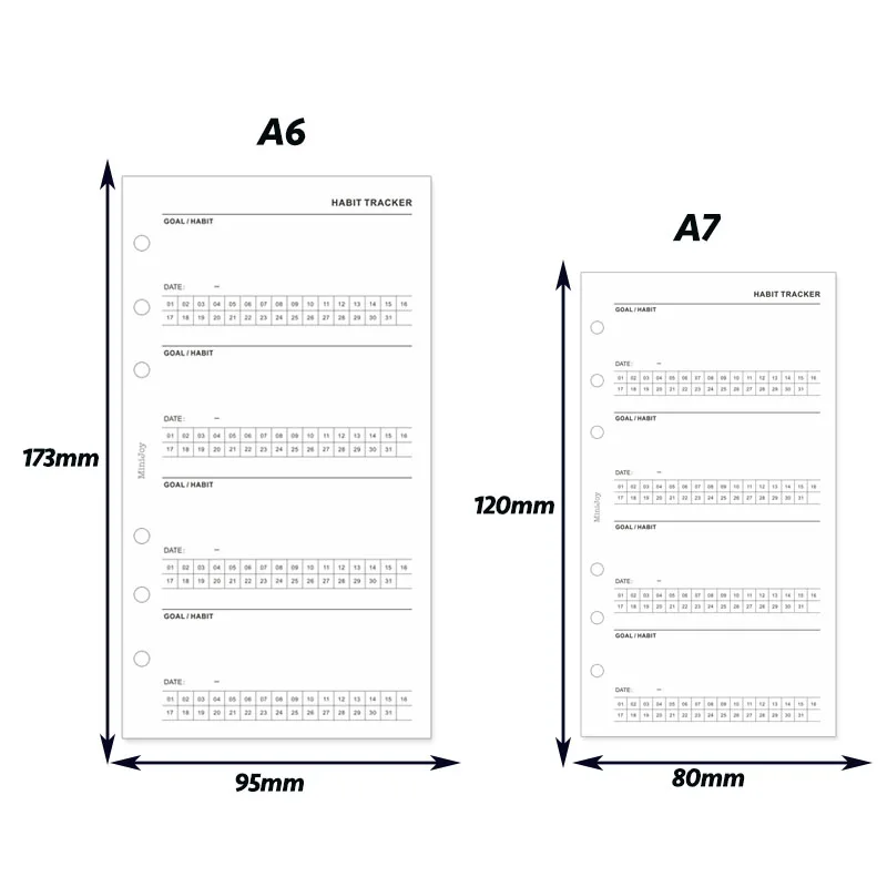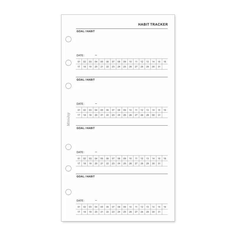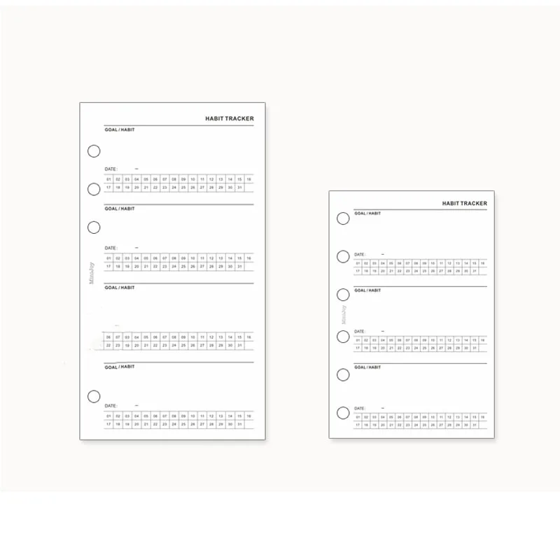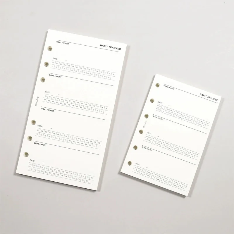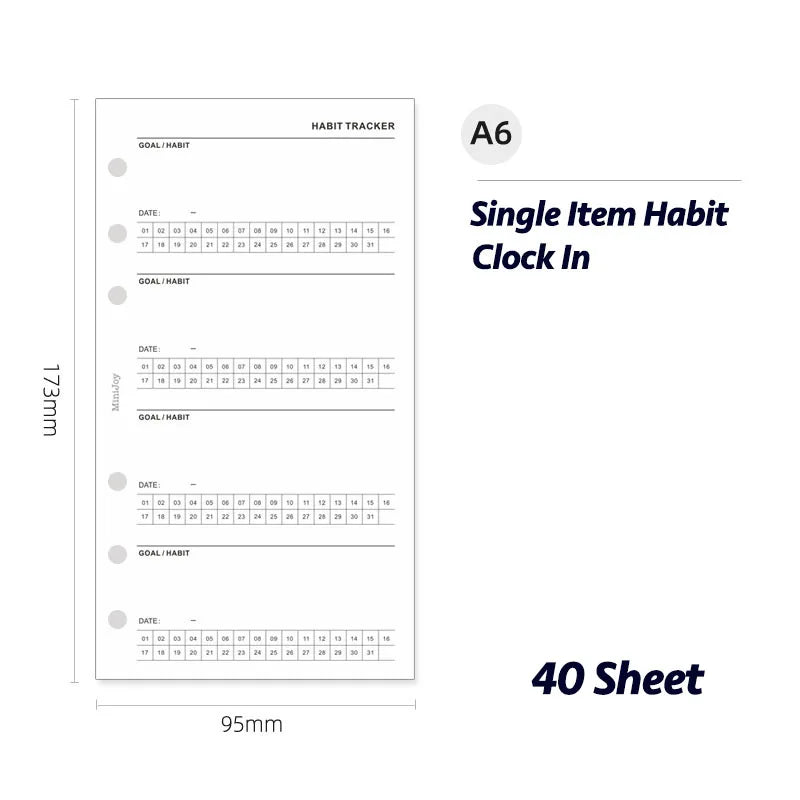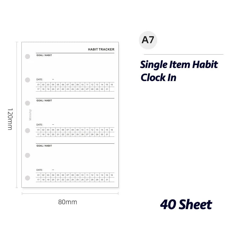 Fromthenon Minimalist Ledger Loose Leaf Paper A6A7 Single Item Habit Clock in Loose Leaf Replacement Function Inner Page