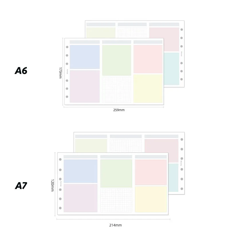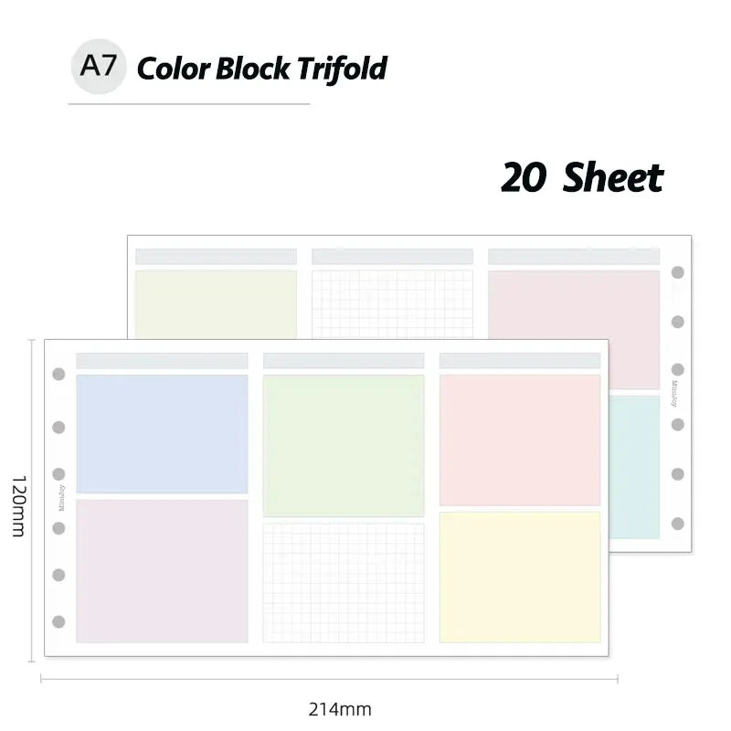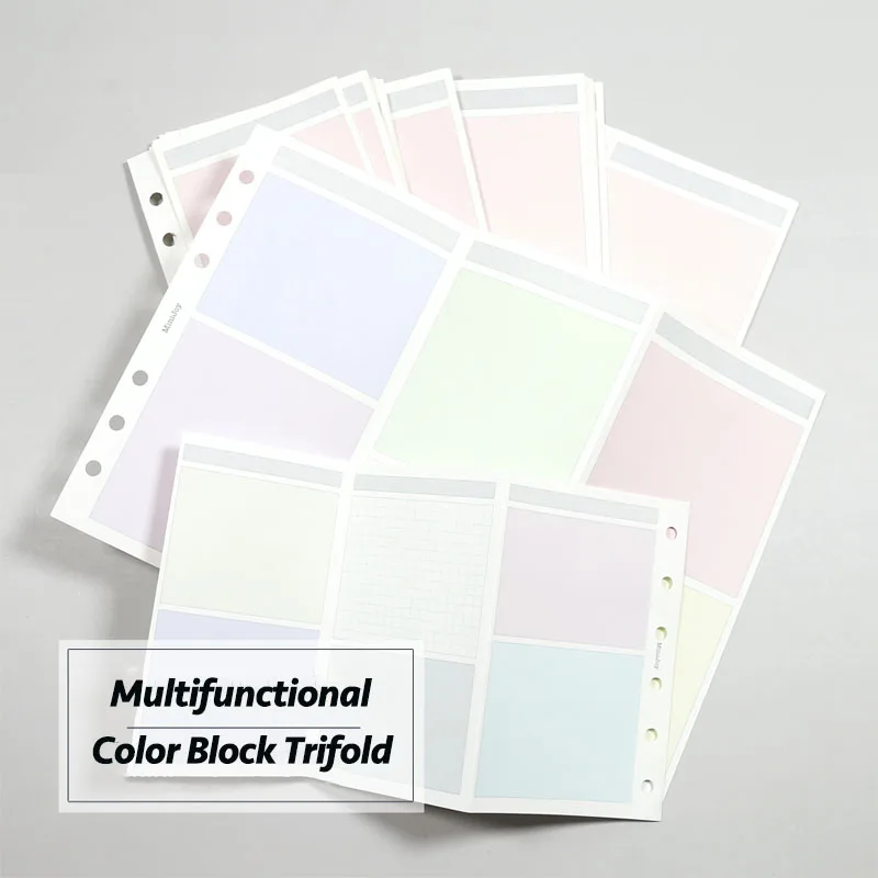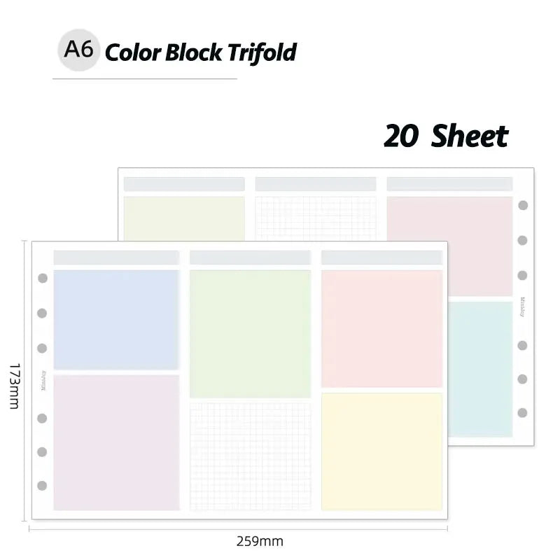 Fromthenon Practical Hand Ledger Loose Leaf Paper A6A7 Multifunctional Color Block Three Fold Replacement Core Inner Page