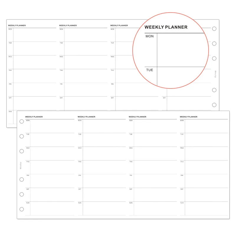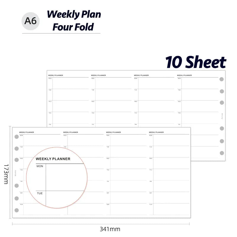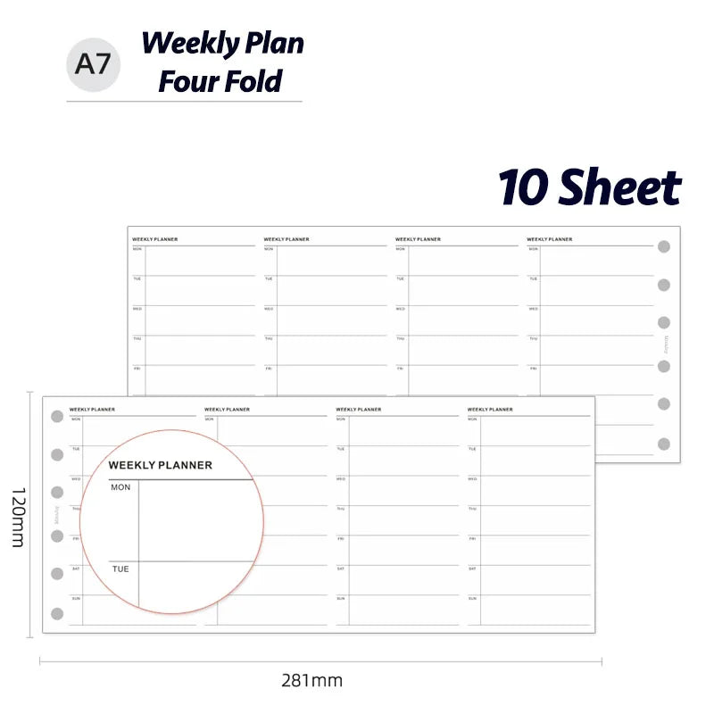 Fromthenon Simplified Weekly Plan Four Fold A6A7 Manual Ledger Loose Leaf Paper Replacement of Core Schedule Inner Page