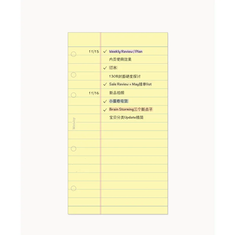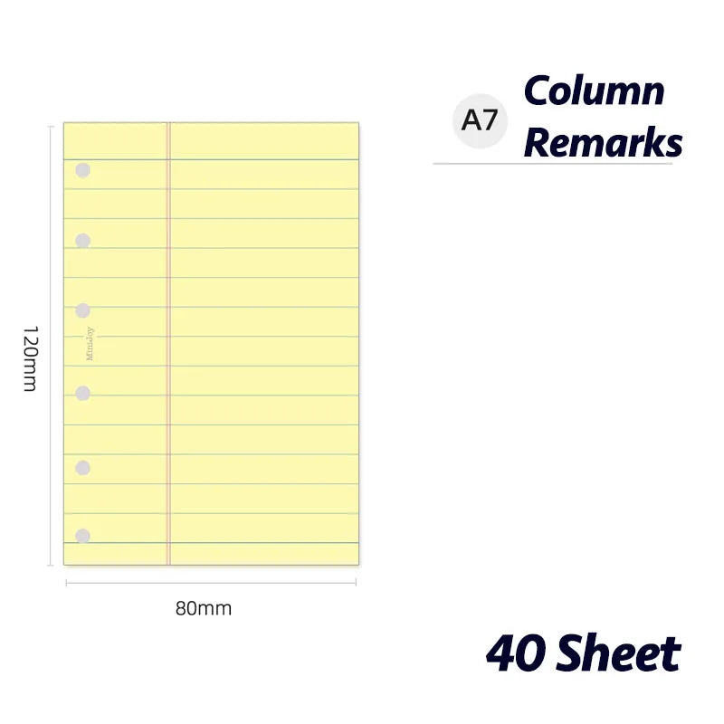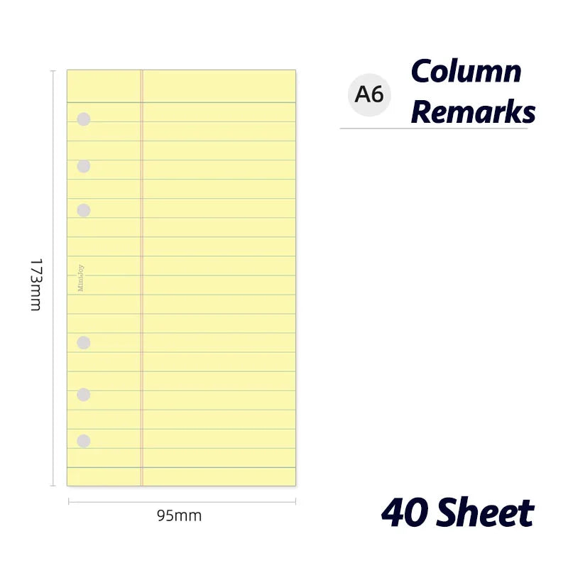 Fromthenon Simplified Yellow Loose Leaf Paper A6A7 Column Remarks Colored Replacement Core Horizontal Line Inner Page