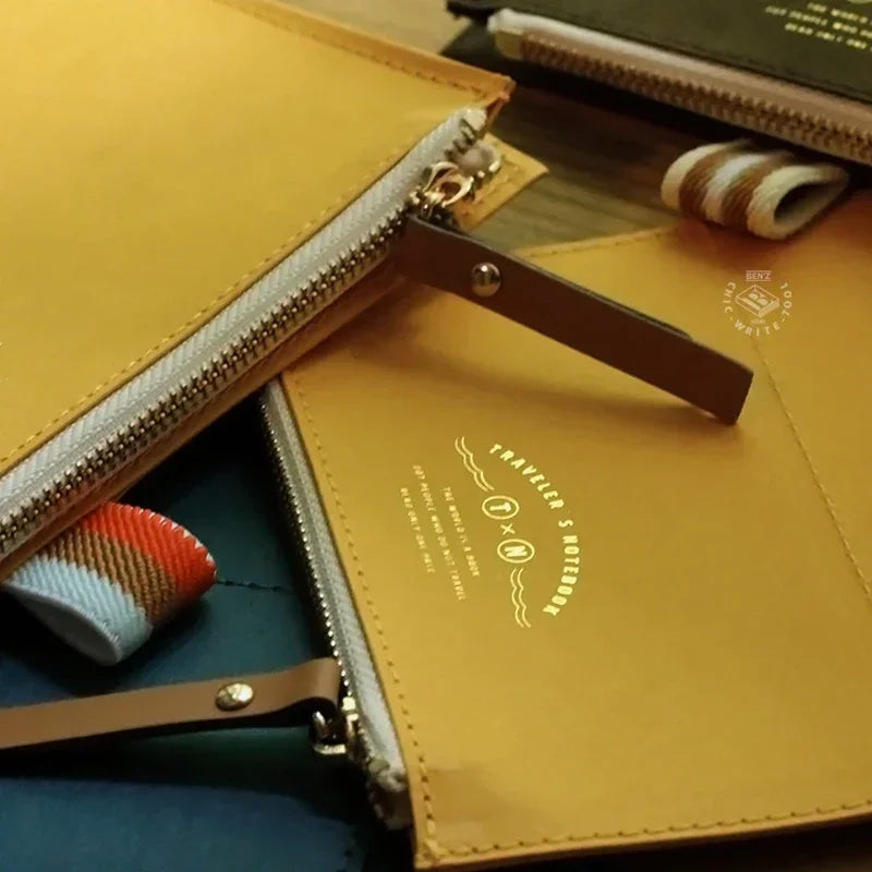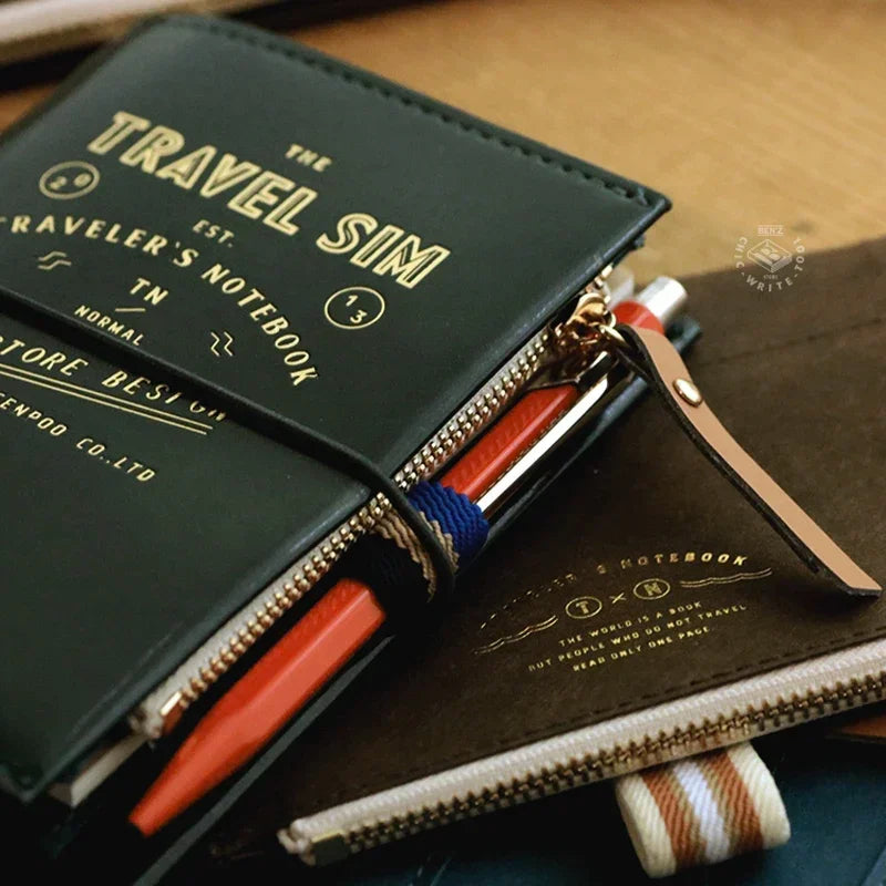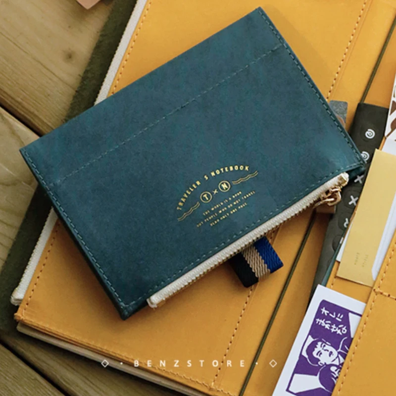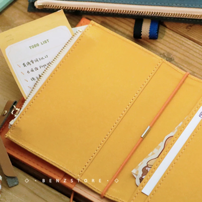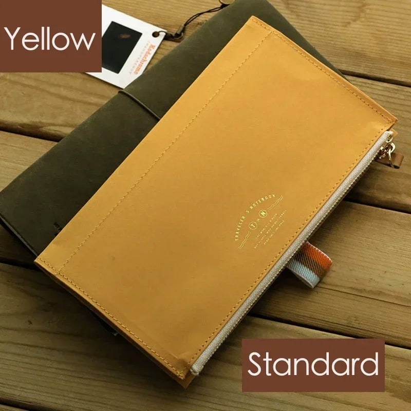 Fromthenon Travel Notebook Storage Bag Loose Leaf Notebook Washable Zipper Pen Bag Stationery Stickers Storage Supplies