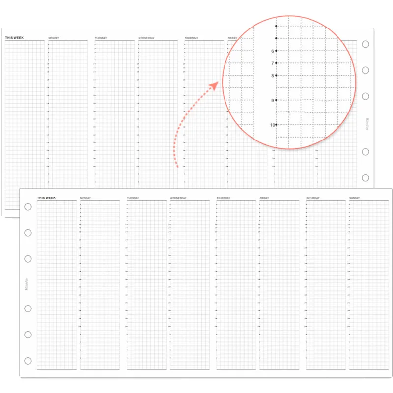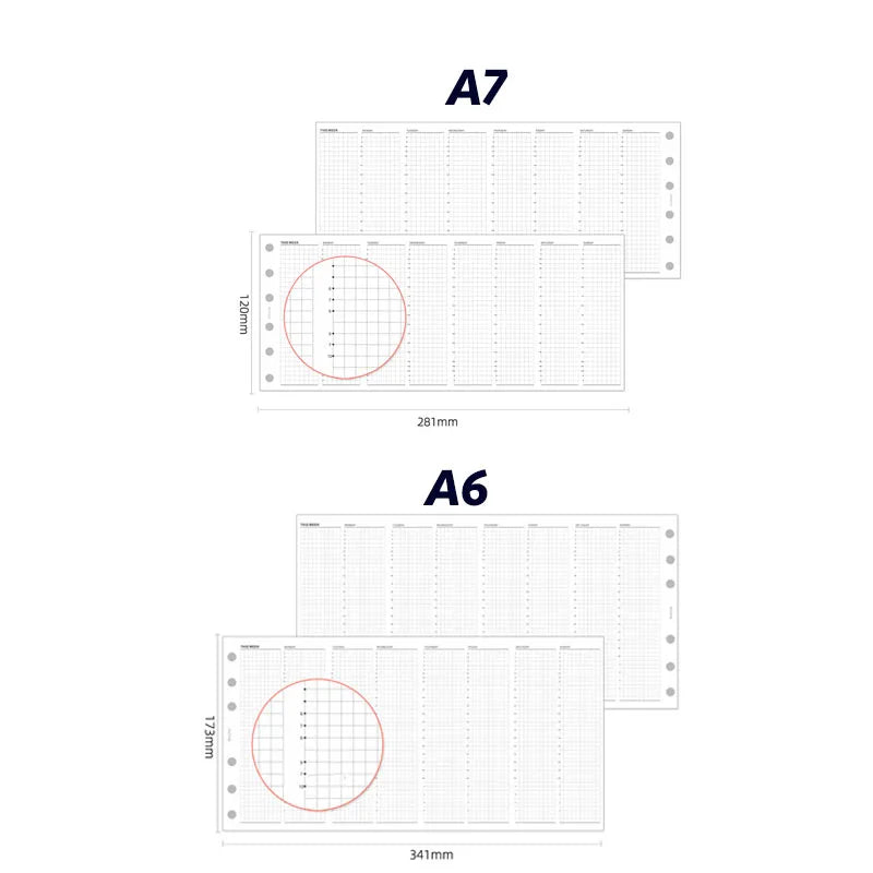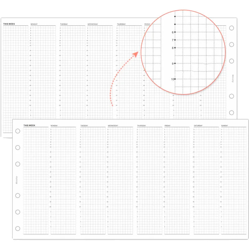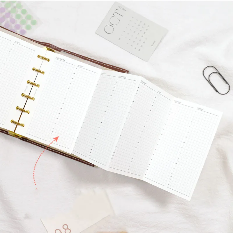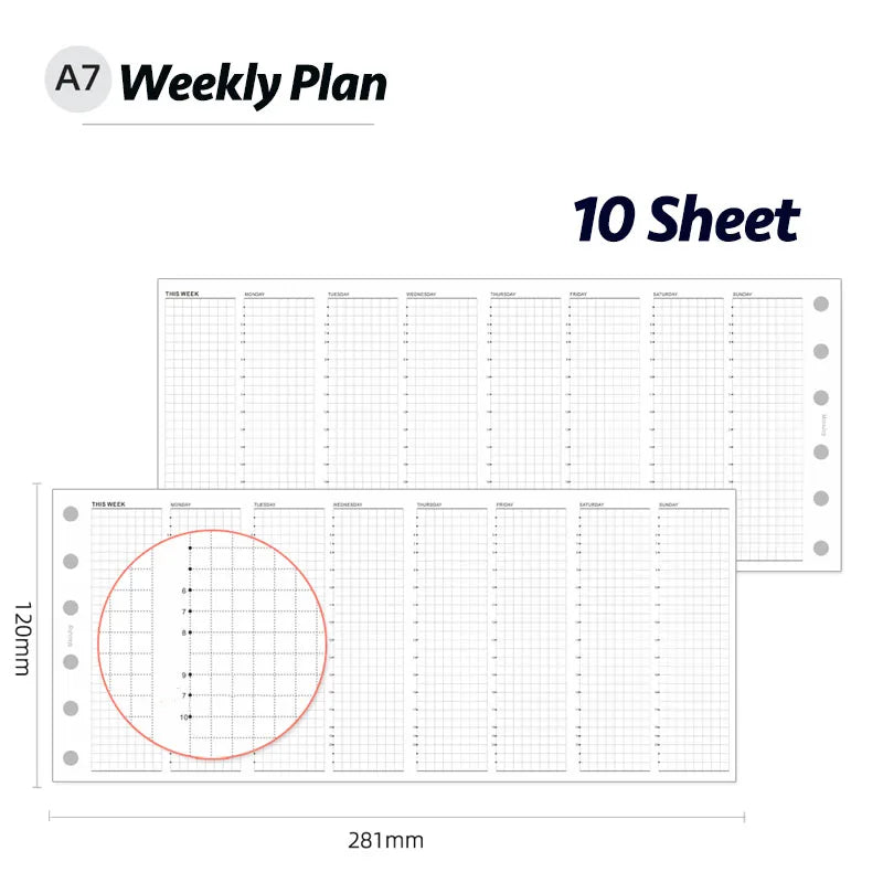 Fromthenon Weekly Plan 24 Hour A6A7 Timeline Manual Ledger Loose Leaf Paper Four Fold Replacement Core