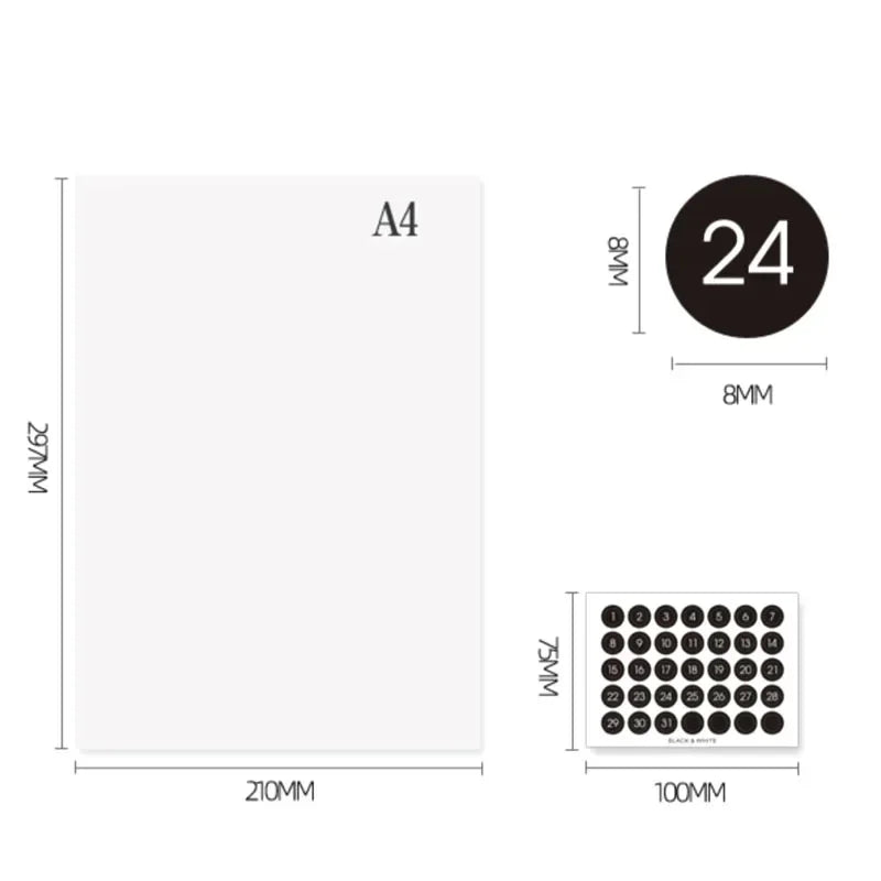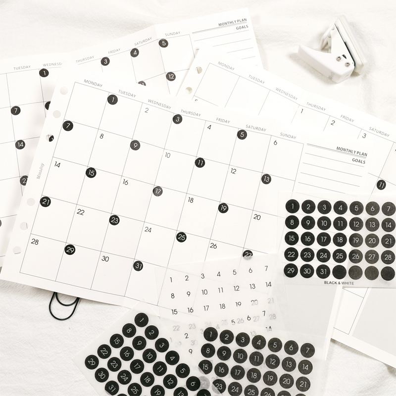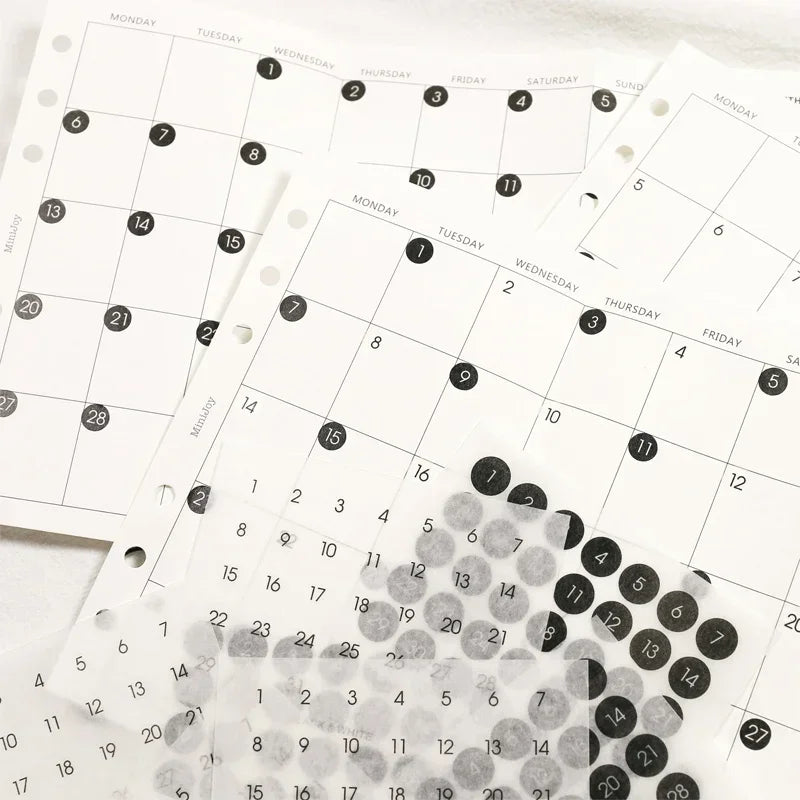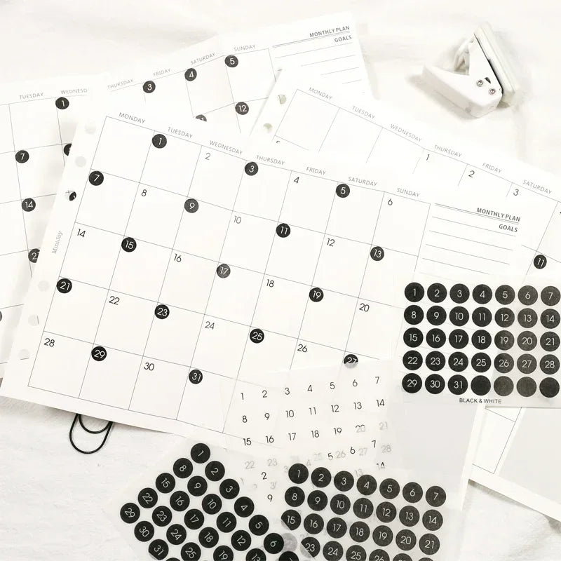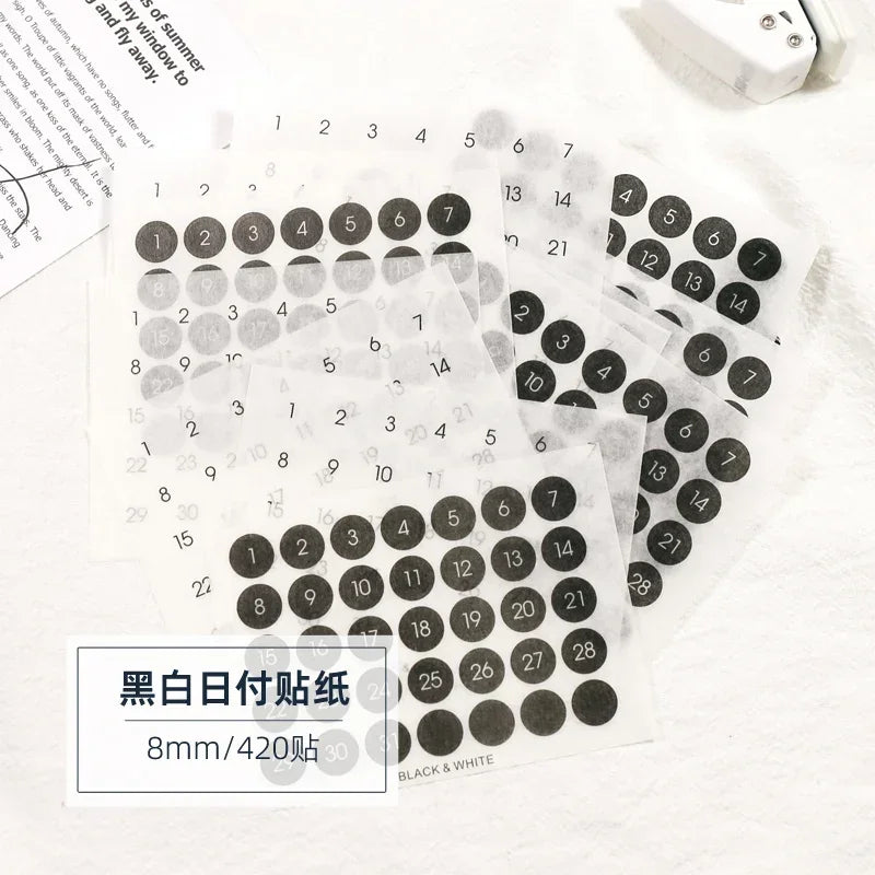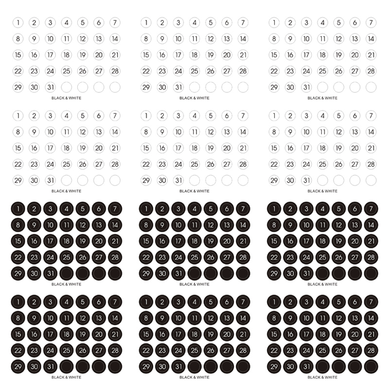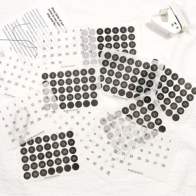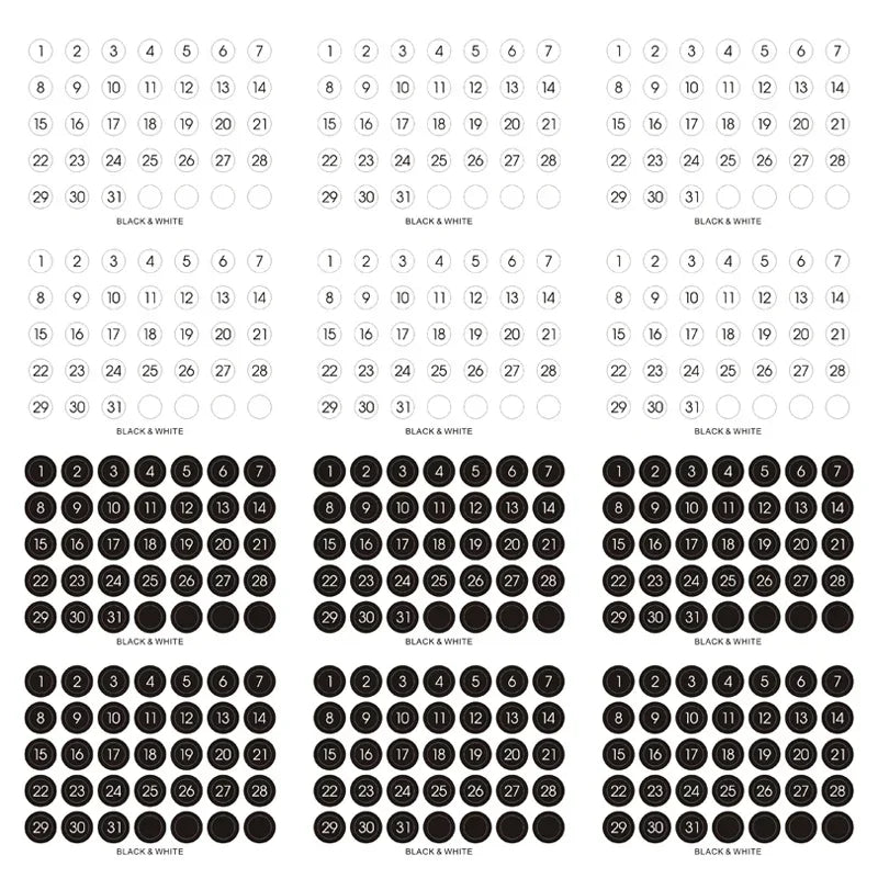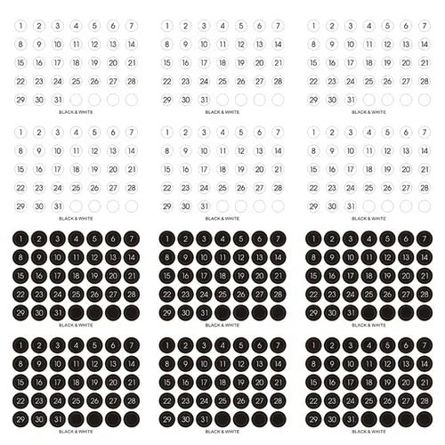 Ins Wind Black and White Round Number Sticker Year Round Date Monthly Plan Round Sticker Digital Sticker Planner Stickers