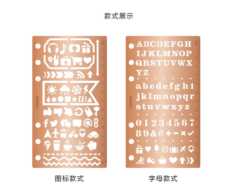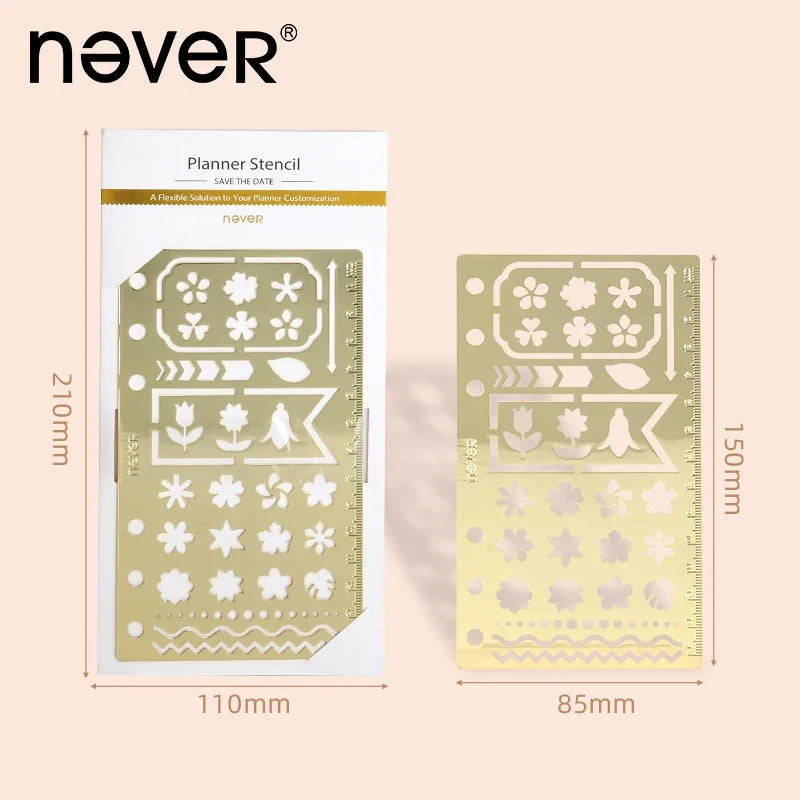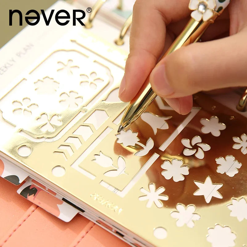 Never Metal Ruler Rose Gold Drafting Tools Hollow Ruler Planner Journal Multifunctional Graffiti Drawing Accessories Stationery