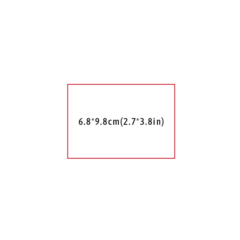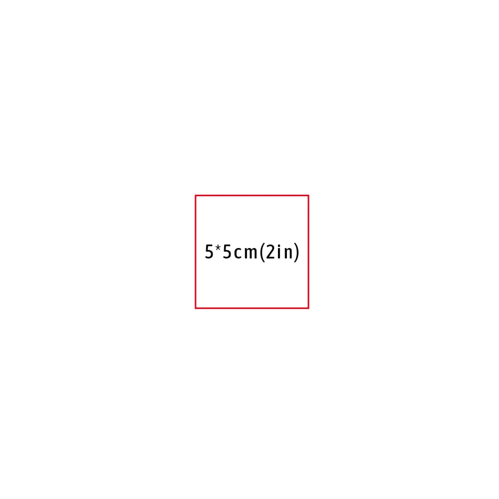 rectangular : 4*2 cm (1.6*0.8 inches), 5*5 cm(2*2 inches), 5*8 cm(2*3.1 inches), 6.8*9.8 cm(2.8*3.9 inches) , 8*12 cm (2.7*4.8 inches), 10*10 cm (4*4 inches), 10*15 cm(4*6 inches), 15*15 cm(6*6 inches), 20*20 cm(7.9*7.9 inches)